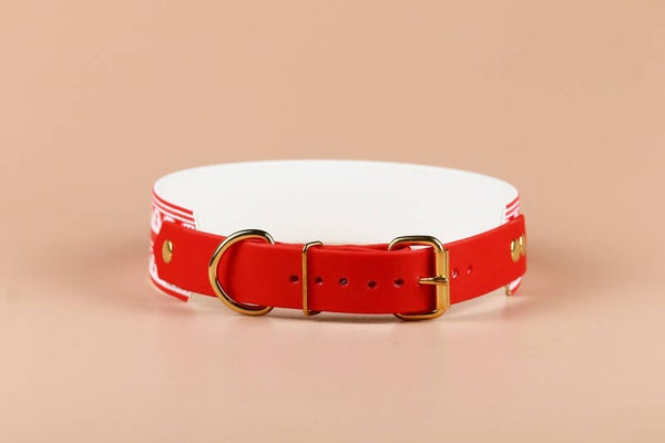 Le Biothane bêta est imprimé à l'aide d'une technique UV. L'impression résiste aux intempéries et aux rayures