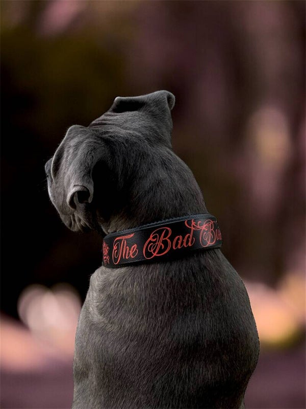Collier en biothane imprimé avec phrase ou prénom personnalisable et doublure rembourrage.